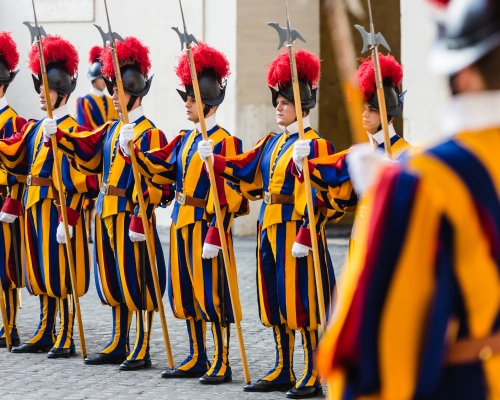 Protecting the Pope since 1506, the Swiss Guard's uniform is a living museum piece. Designed by a 20th-century commander but inspired by 16th-century art, its bold stripes and metallic helmet evoke Michelangelo's era.