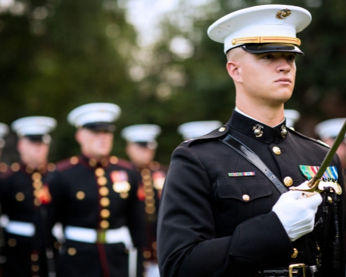 Iconic Features: White parade uniforms, green berets.