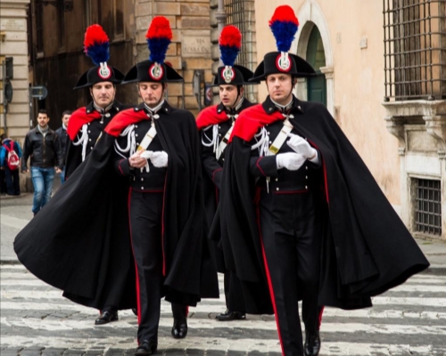 Italy's military police blend la dolce vita with law enforcement. Their 19th-century-inspired uniform features a "lucerna" hat tilted at a rakish angle and a sword for formal events. The red stripe running down the trousers? It honors soldiers who died in World War I. Whether patrolling piazzas or performing horseback ceremonies, the Carabinieri prove that authority can be stylish.